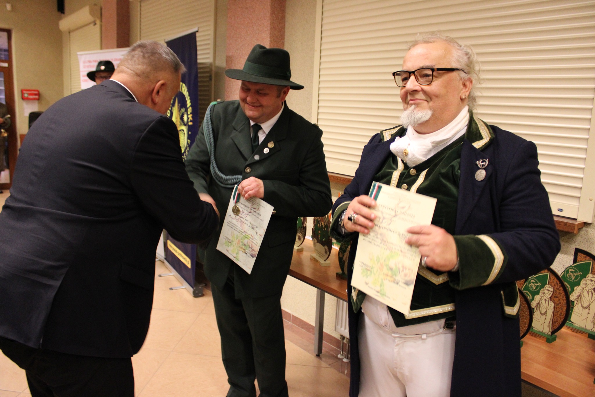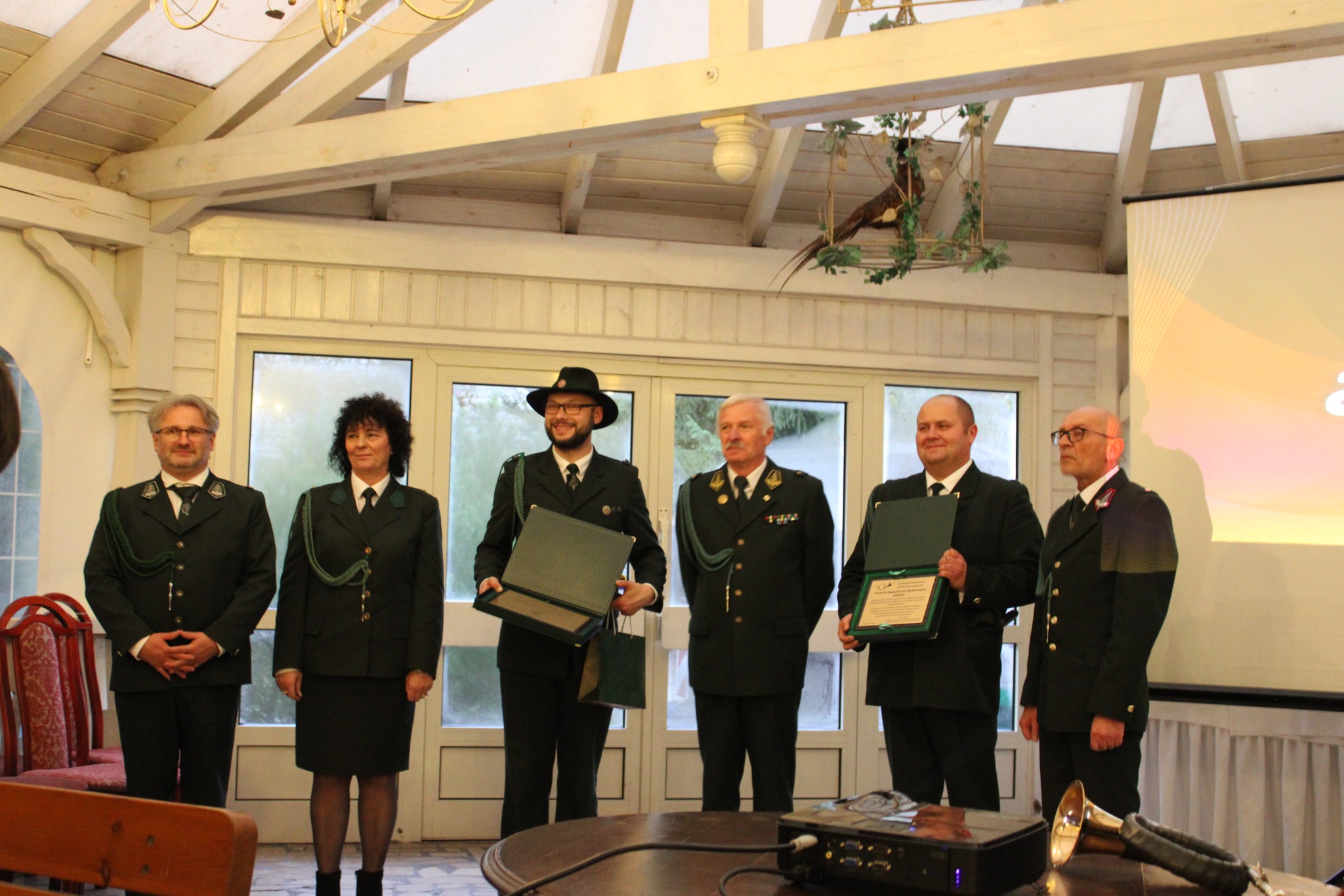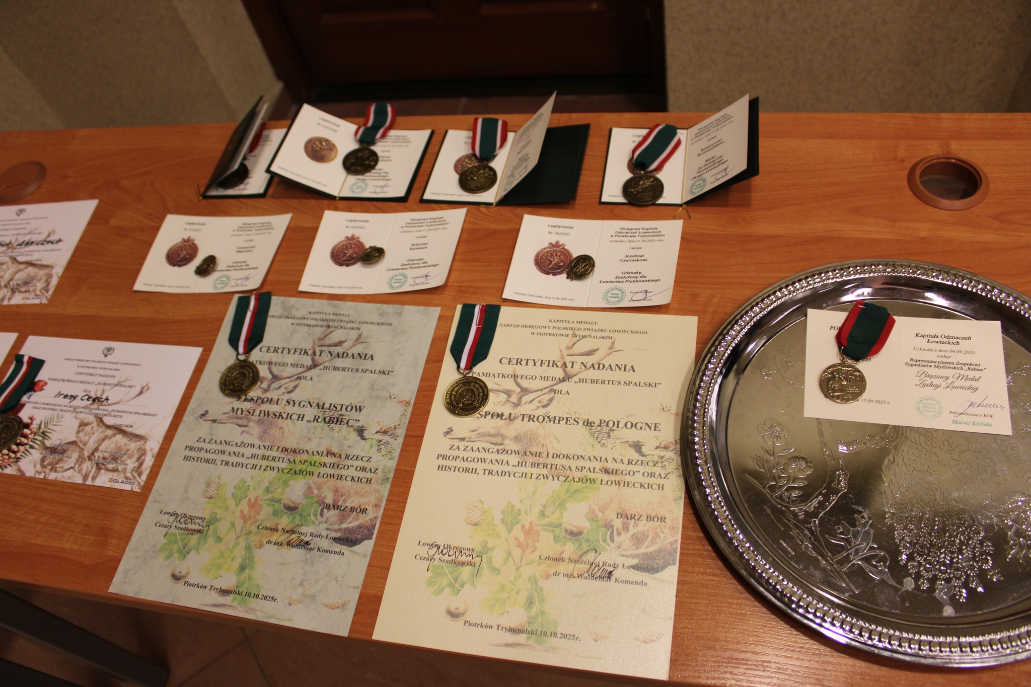 Dodatkowo indywidualnie zostali wyróżnieni: Tomasz Stępień – kierownik Zespołu – odznaką „Zasłużony dla Łowiectwa Piotrkowskiego”; Seweryn Borowiecki – kier. honorowy Zespołu – medalem „Za Zasługi dla Piotrkowskiego Okręgu Łowieckiego”; Julita Siatkowska – kier. ds. promocji – Pamiątkowym Medalem „Hubertus Spalski”. Wręczenia dokonali kol. Waldemar Komenda, kol. Cezary Szadkowski oraz Jacek Chudy – dyr. RDLP w Łodzi.